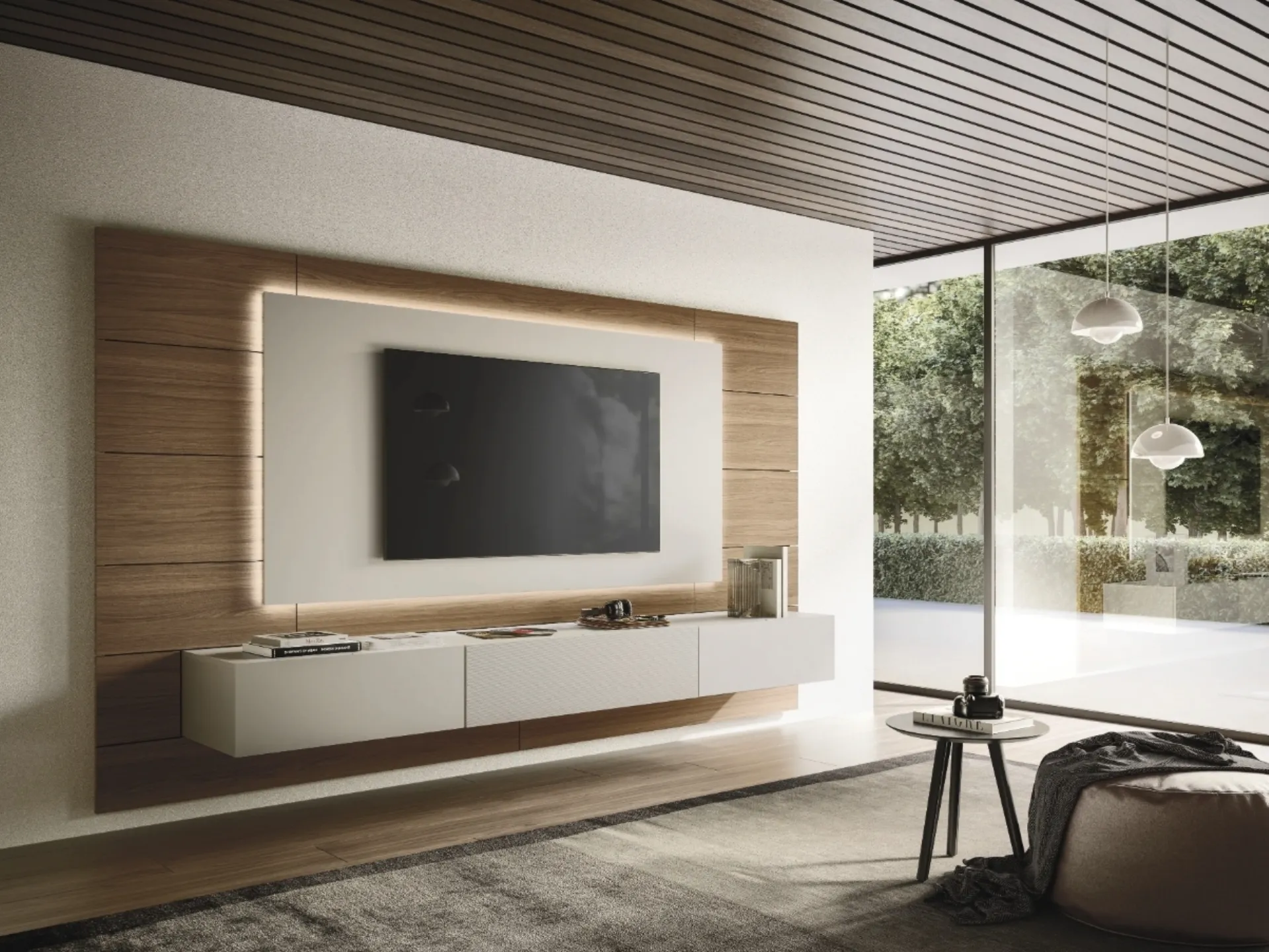 TV stands, if carefully selected, can help complete your living room by serving as a multifunctional support surface for your belongings, TV, and more. Whether you intend to store your TV, books, or assorted items, a TV stand like the one shown in the photo will personalize and enhance indoor spaces. In the living room, we need furniture that accompanies us in our daily lives at home, facilitating everyday tasks and creating special atmospheres. The model in the photo belongs to Sangiacomo's line of TV stands in matte lacquer finish: in store, you will find only the most beautiful compositions on the market.