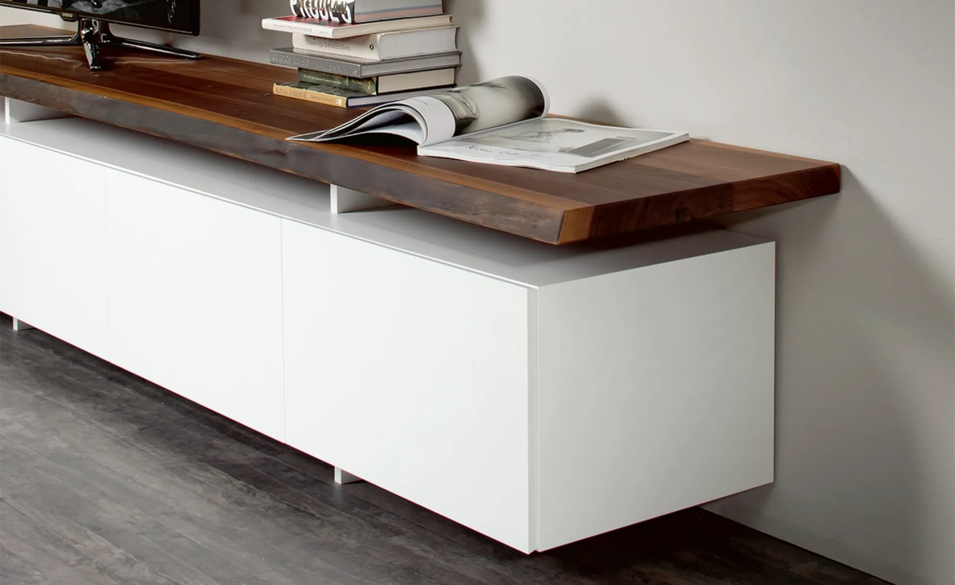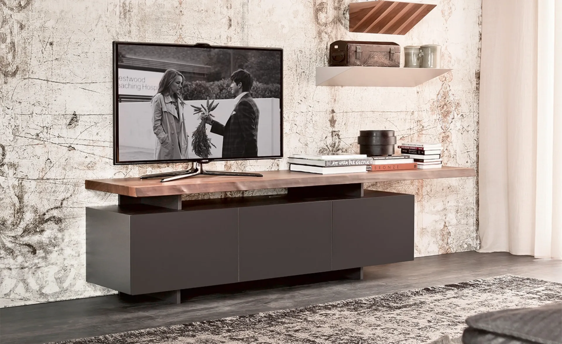If you are looking for a high-quality composition with a matte lacquered TV stand, you can see the most beautiful solutions from the Cattelan Italia brand in person. In a practically infinite range of aesthetically valuable complements for the living room, the multifunctional TV stand designs are of great importance. The model visible in the photo, among the numerous matte lacquered TV stand designs from the brand, will surely satisfy you: enhance your living room with functionality and style. To enhance your home with style, especially if you already have designer furniture, rely on us and we will show you the best models of TV stands on the market. TV stands enhance the interior spaces, organize the space, and give you the opportunity to make use of a multifunctional support surface in the living room.