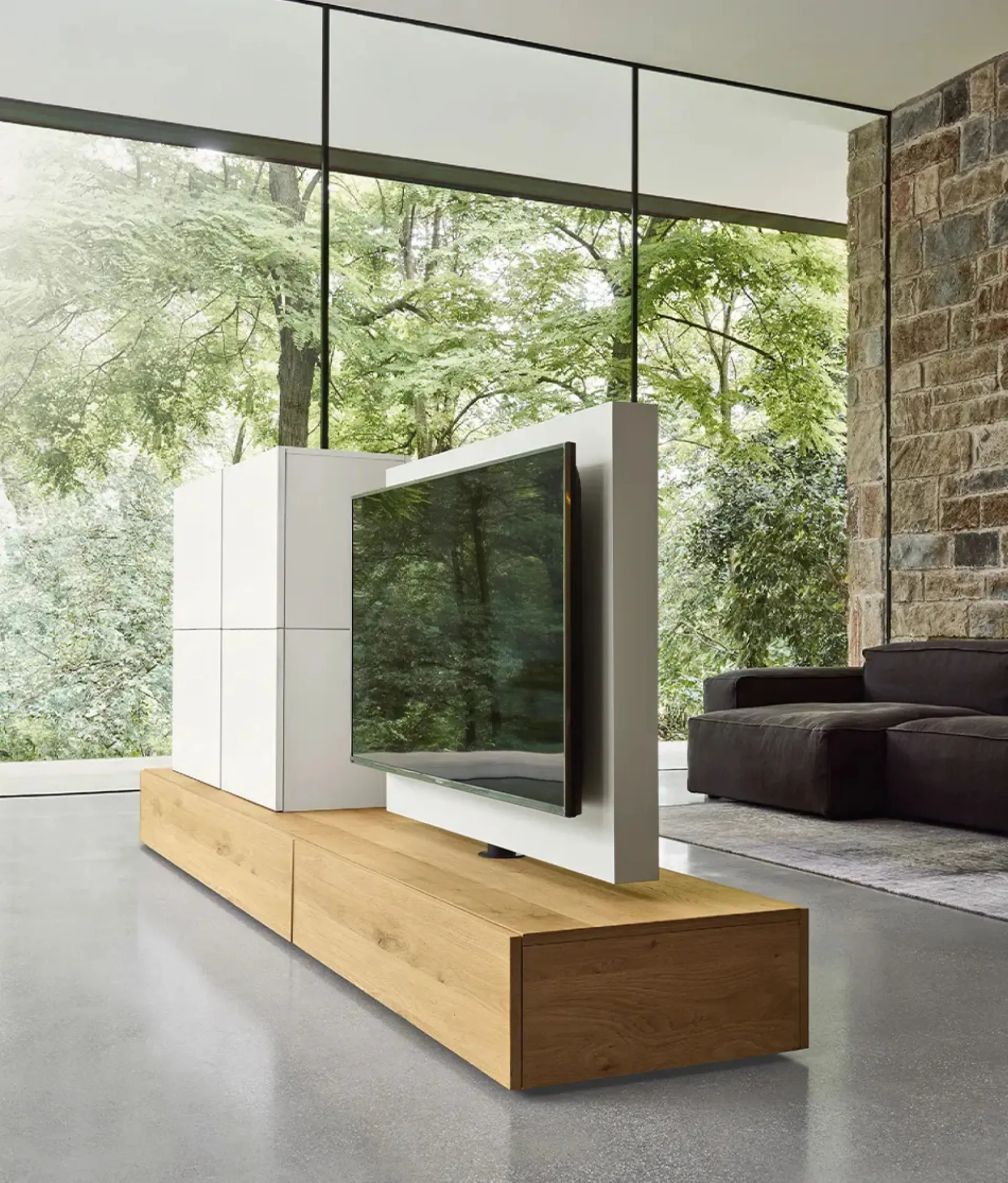 The model visible in the photo, among the different wooden TV cabinet designs of the brand, will definitely satisfy you: enhance your living room with functionality and style. To complete your home with style, especially if you already have designer furniture, turn to us and we will show you the best models of TV cabinets on the market. TV cabinets make indoor spaces beautiful, organize the space and give you the opportunity to use a multifunctional support surface in the living room. If you are looking for a high-quality wooden TV cabinet proposal, in the store you can personally view the most exclusive solutions from the Sangiacomo brand.