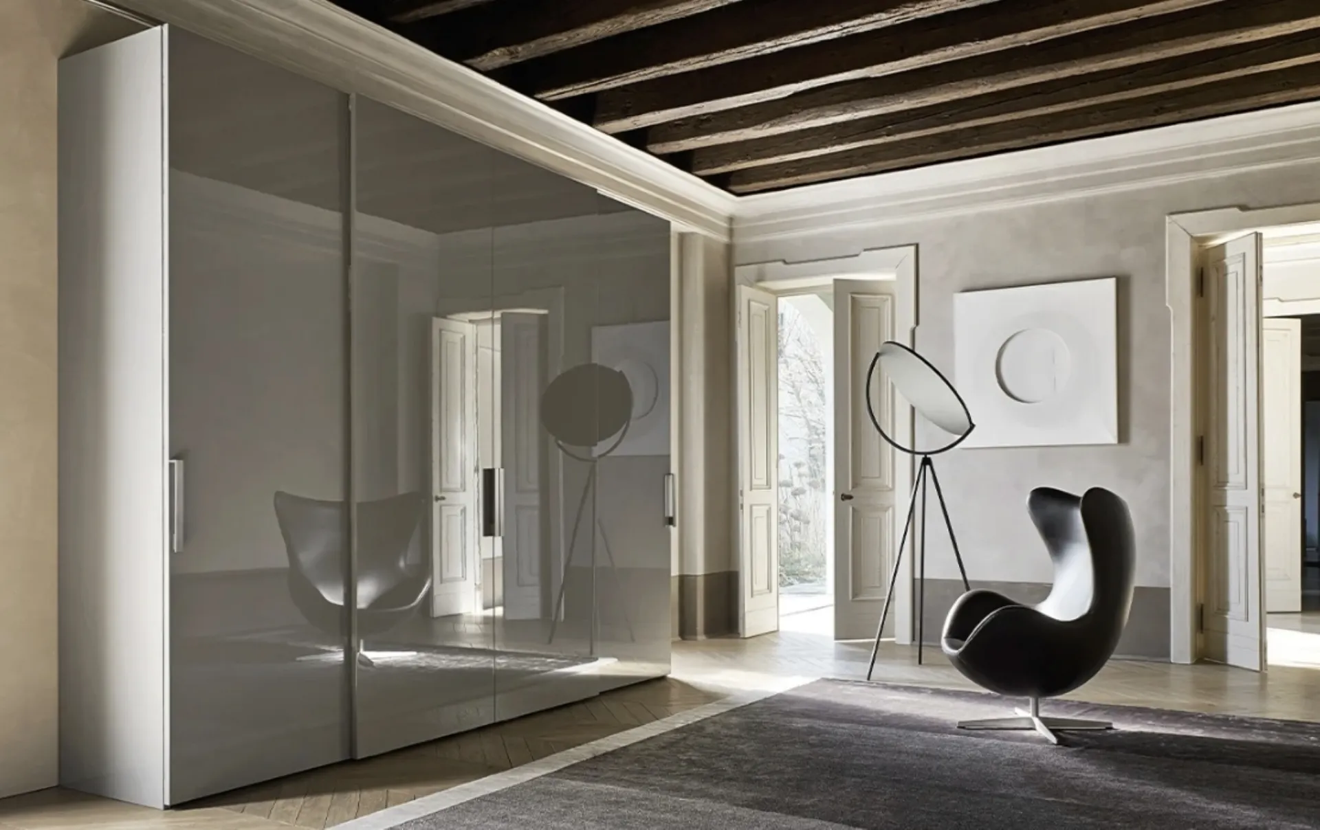 If you want to create a practical and sophisticated room, fill out the form or come to us to get information, many ideas for the home in terms of Home Furnishing. Visiting us means personally viewing many proposals from the renowned brand, always of high quality. Smooth door wardrobe with Mia handle by Sangiacomo: if you desire professional decorators for quotes and projects, create with us the home you have always wanted. A diverse offer of glossy lacquered furnishings like this wardrobe with sliding doors in the photo. Smooth door wardrobe with Mia handle by Sangiacomo in glossy lacquer: in a rich range of furniture and accessory items, this model will help you complete your bedroom as you have always dreamed.