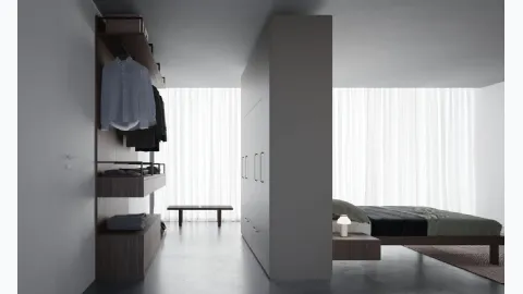 To design a beautiful and high-quality room at its best, prefer the finest solutions from the best brands, beds, wardrobes, and bedside tables with great design. Wardrobes with hinged doors are essential elements in the room, to furnish it well, make it functional, and complete with everything. Contact us and get information about our Home Furnishing collection: you will be able to complete the bedroom using a wide range of modern storage units, such as the melamine wardrobe in the photo. Nardi Interni Double-sided Walk-in Wardrobe: fill out the form to receive information of any kind and advice on designing the room you have always wanted.