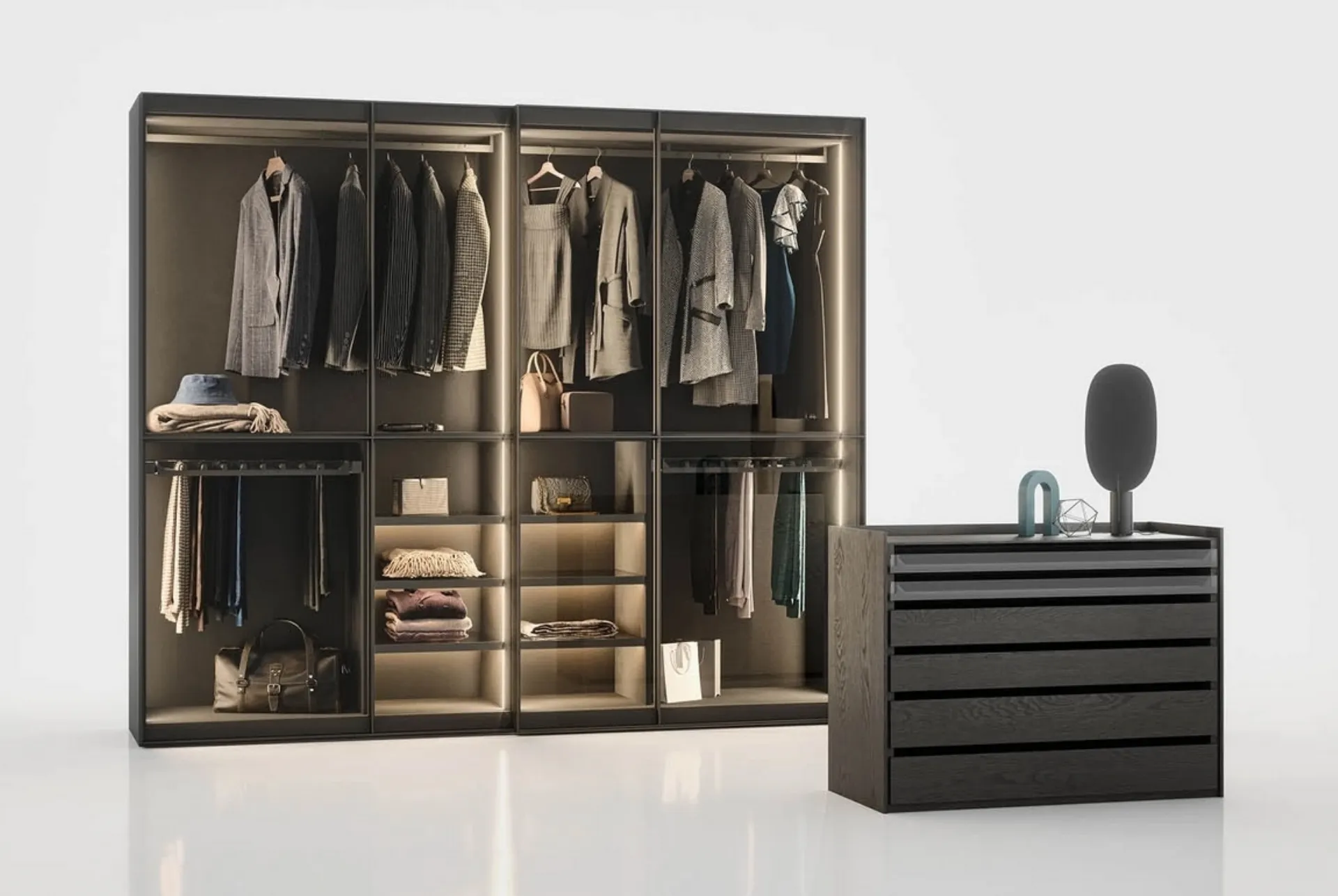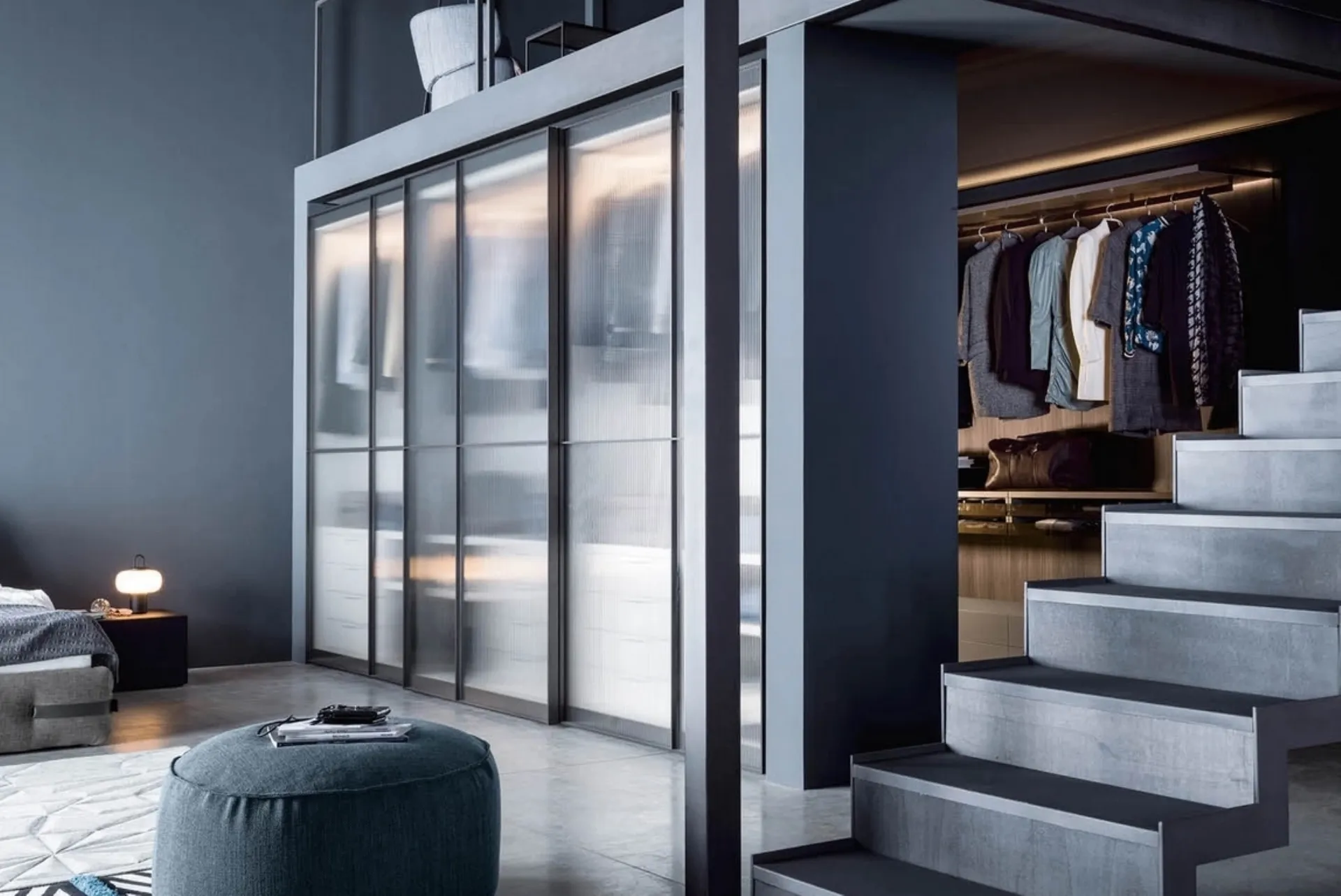 To set up a room beautifully and functionally, choose the most exclusive solutions from the best brands, such as beds, wardrobes, and chests of drawers with high aesthetic content. Wall wardrobes with sliding doors are essential components in a bedroom, to furnish it in the best way, making it functional and complete with everything. Contact us and get information about our line of Home Furniture: you will have the opportunity to complete the bedroom by taking advantage of a diverse range of storage furniture designs, such as the glass wardrobe in the photo. Novamobili's Layer sliding glass wardrobe: fill out the form to receive information of all kinds and advice on how to set up the room you have always desired.