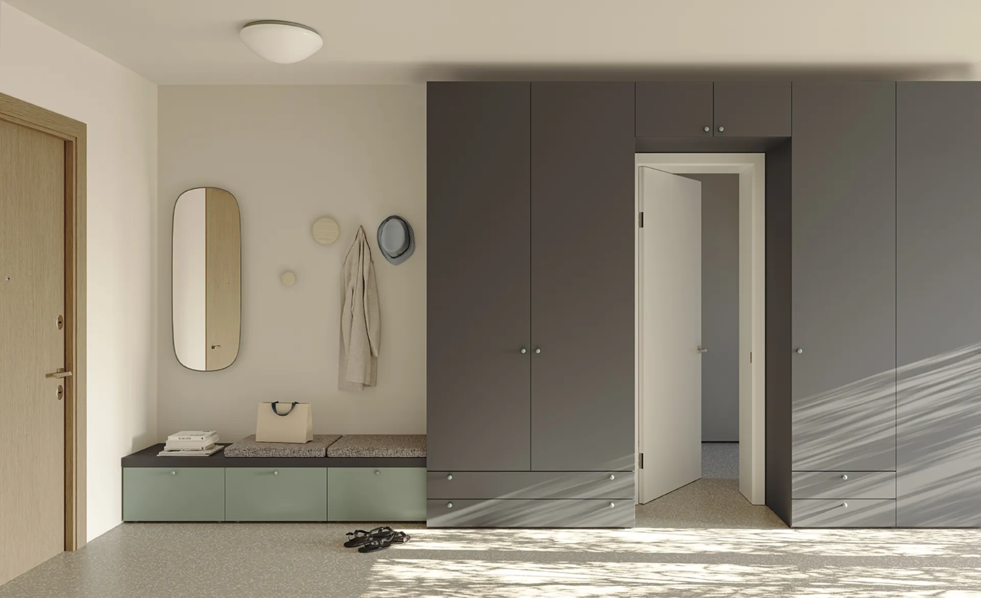 Colombini Casa's One R01 wardrobe in melamine: in a rich catalog of furniture and accessories, this model will allow you to complete your bedroom as you imagined it. Visiting us means seeing in person different solutions by the renowned brand, always of great design. A wide variety of melamine furnishings like this wardrobe with hinged doors in the photo. If you want to recreate a beautiful and functional room, fill out the form or visit us to get information, advice, and ideas in the field of Home Furnishing. Armadio One R01 by Colombini Casa: if you are looking for professional interior designers for estimates and projects, let us help you create the home you have always desired.
