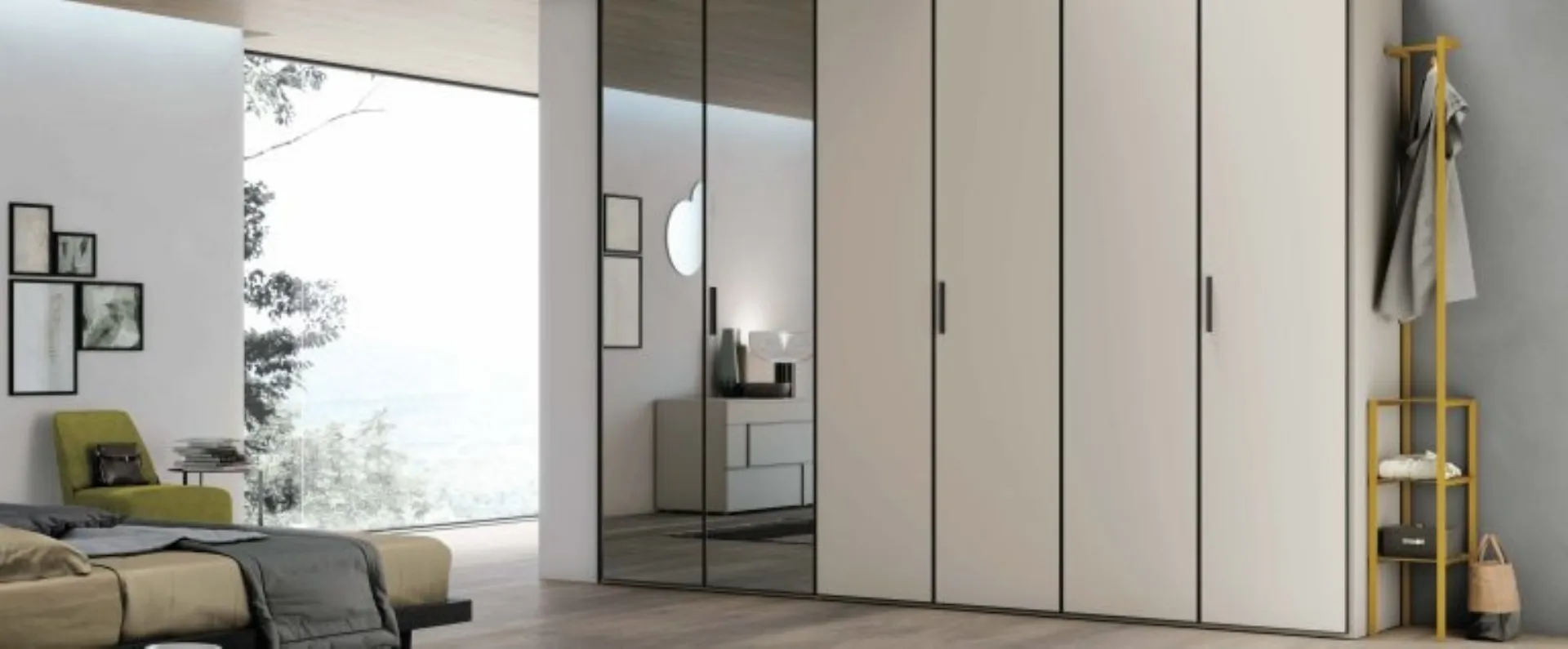 To complete the furnishing project excellently, prefer our proposals of Home Furnishing from the best brands, different beds, wardrobes, and bedside tables for class, size, and material. The sleeping area is dedicated to rest, so it must be furnished at its best and complete with furniture and accessories capable of recreating a always serene atmosphere. The wardrobes and walk-in closets with hinged doors must furnish the room ensuring you a perfect optimization of spaces and an exclusive aesthetic research. Contact us for information and quotes and you can complete the sleeping area you have always desired thanks to a wide availability of modern storage furniture like this glass wardrobe in the photo. Satin glass wardrobe profile by Tomasella: fill out the form, contact us and bring to life the relaxation room as you have always imagined it.
