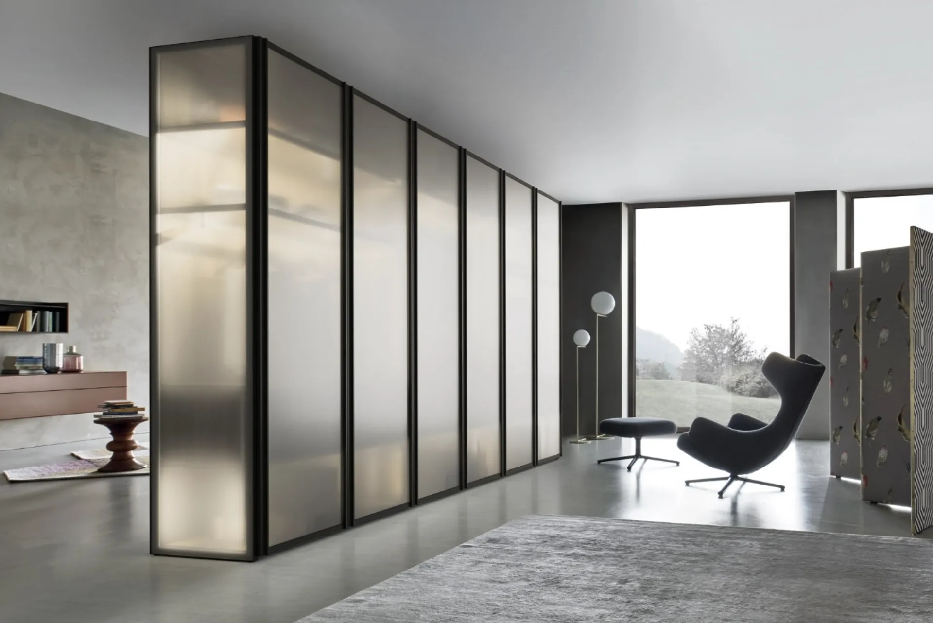 A wide range of glass furnishings such as this wardrobe with hinged doors in the photo. Durability and comfort are aspects that, along with good aesthetic appeal, characterize all the modular design wardrobes of the Sangiacomo brand. If you want to recreate a functional and aesthetically pleasing room, fill out the form or come to us to get information, advice and news in the field of Home Furnishing. Sangiacomo's Scrigno wardrobe: if you are looking for professional decorators for quotes and projects, realize with us the house of your dreams. Visiting us means seeing firsthand the various solutions of the renowned brand, always aesthetically pleasing.
