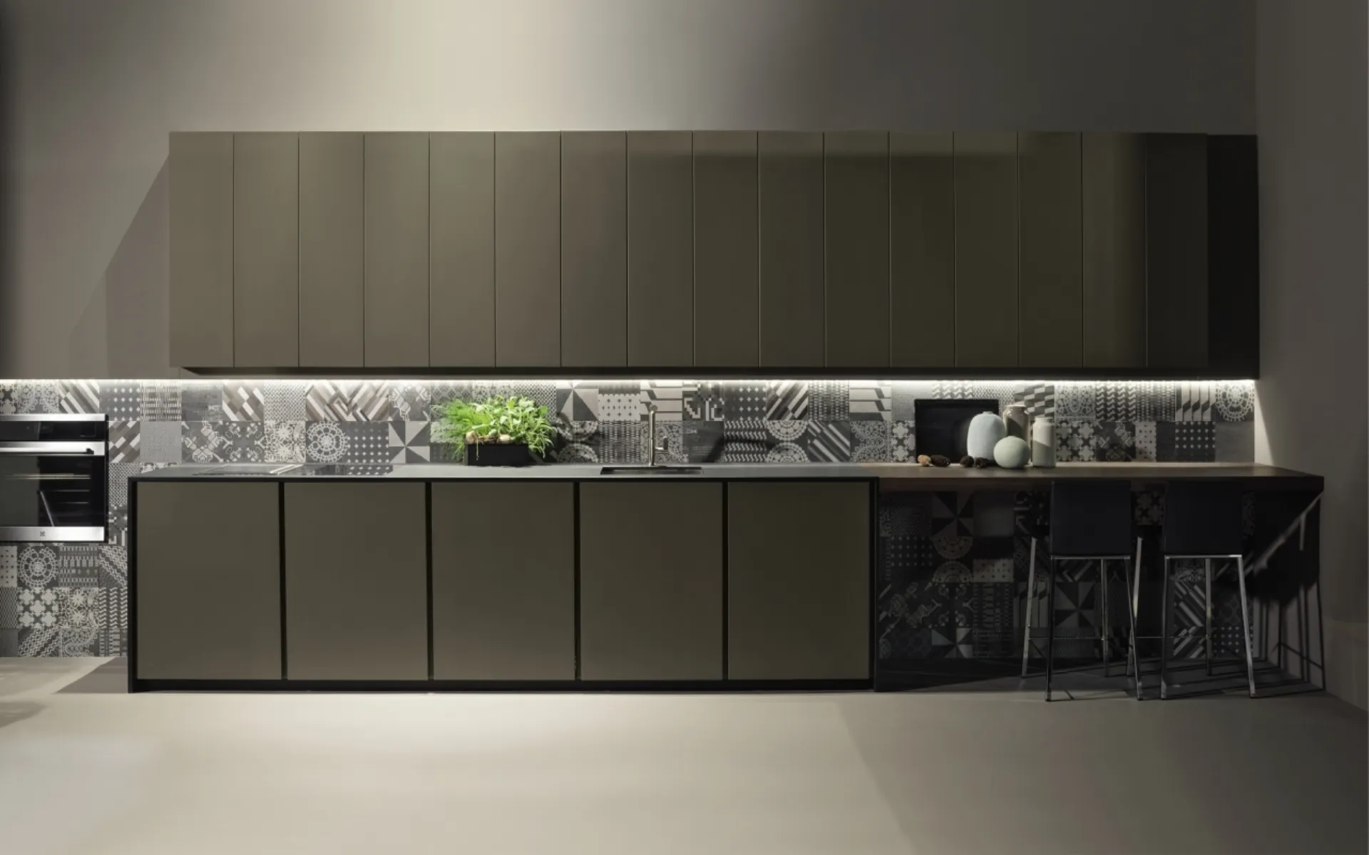 Many people choose to order trendy matte lacquered design solutions, as they perfectly mix functionality and style in organizing spaces. Kitchens are exposed to steam, water vapor and heat every day: choosing the right type of material is as essential as care and maintenance. Thanks to the almost infinite range of shades available for this highly charming solution signed by Maistri, you can recreate the composition of your dreams. Line design solutions are greatly appreciated for their versatility: with us, you can only see the best proposals up close.