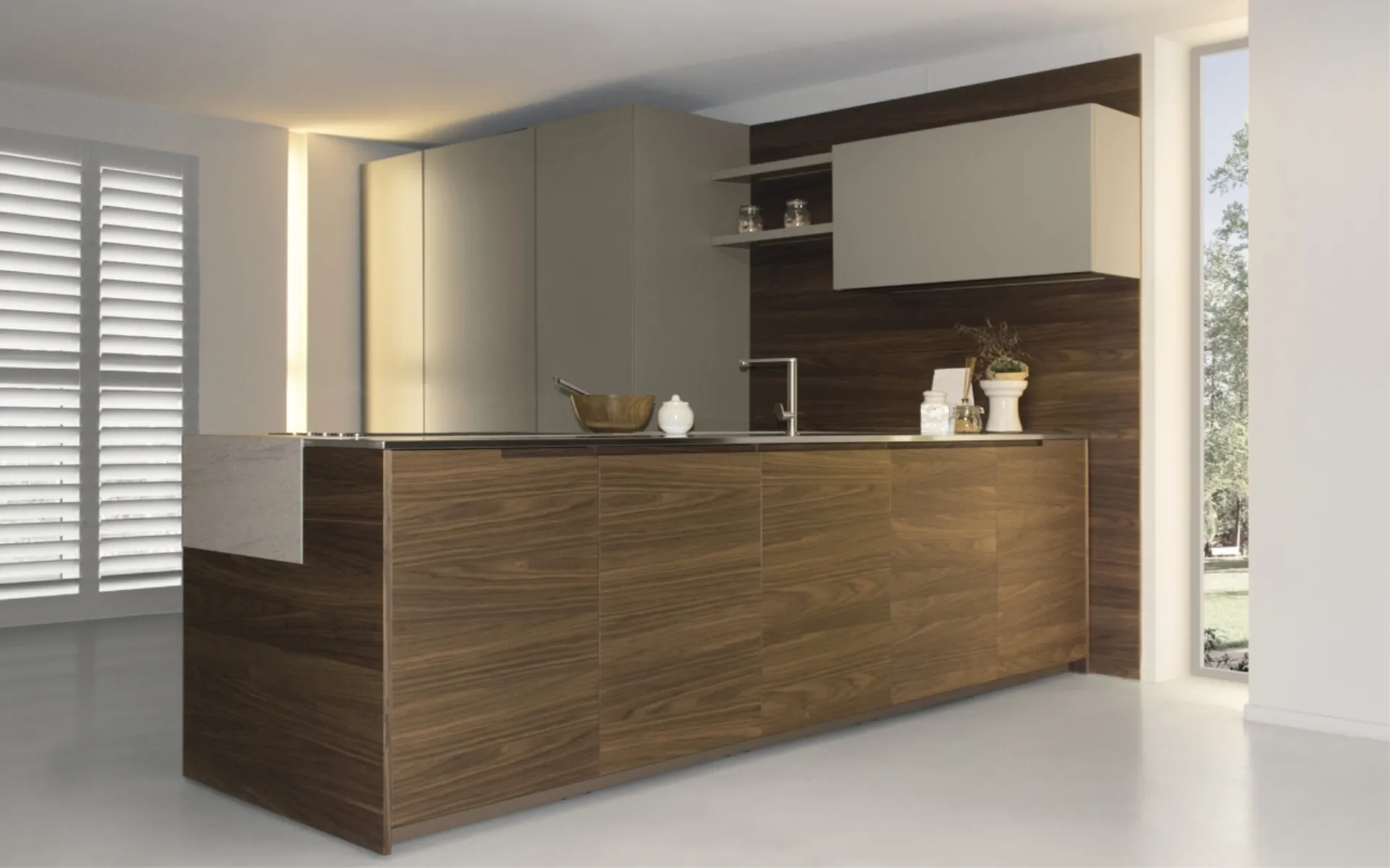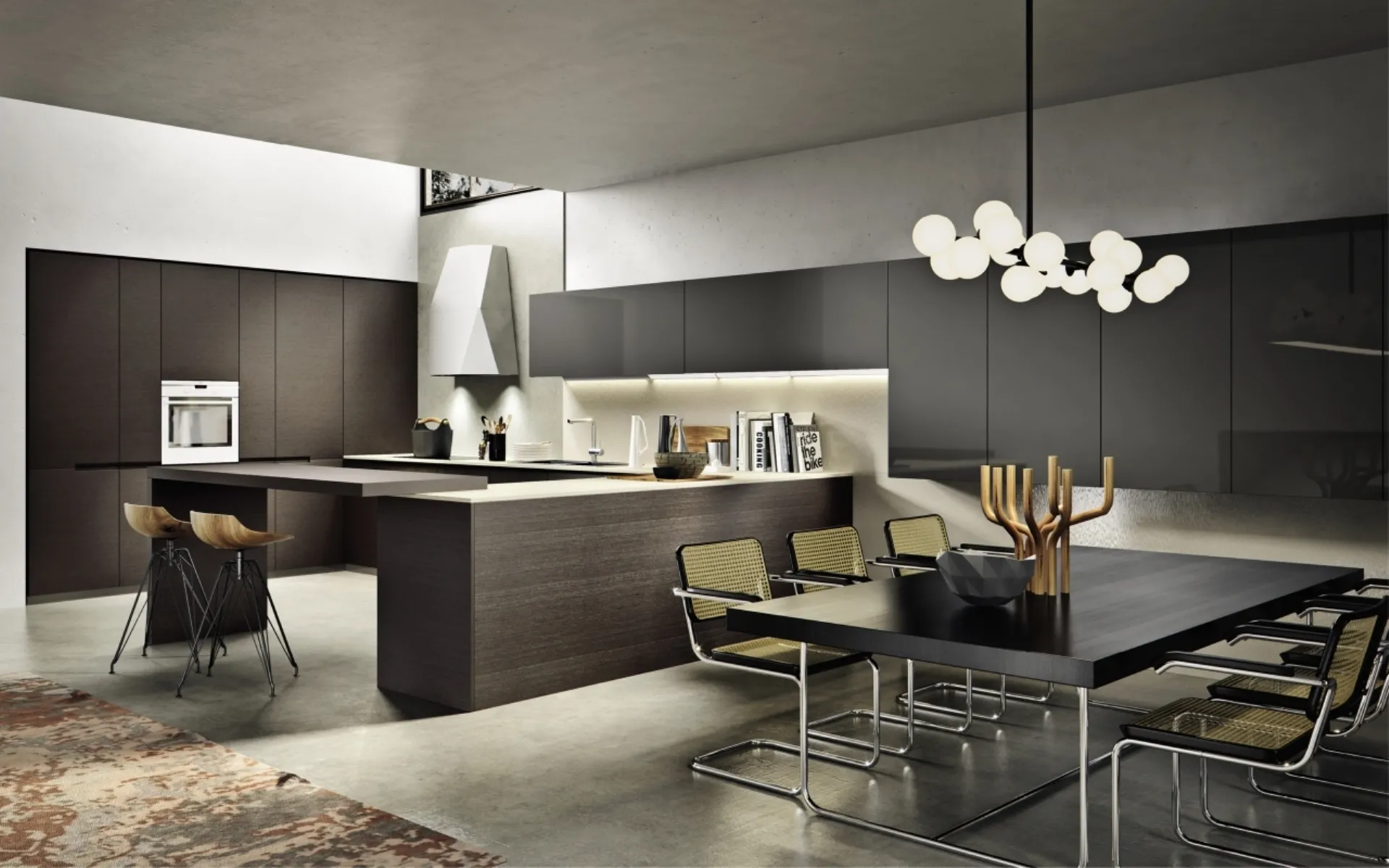 This proposal is built in wood, but it can give life to an extraordinary and personalized space thanks to its modularity and characterization. Maistri gives us the possibility to recreate solutions with modern shapes that can meet the most specific housing and aesthetic needs, where lines and dimensions have no limits. If the characterization of furniture in a design key is an important element in the furniture project of your home, the advice is to choose Maistri's Kitchens with peninsula, like the model available here. By purchasing the Maistri Arena wood Design Kitchen with peninsula, you can adapt every element of the model to your spaces, creating a unique composition with current details.