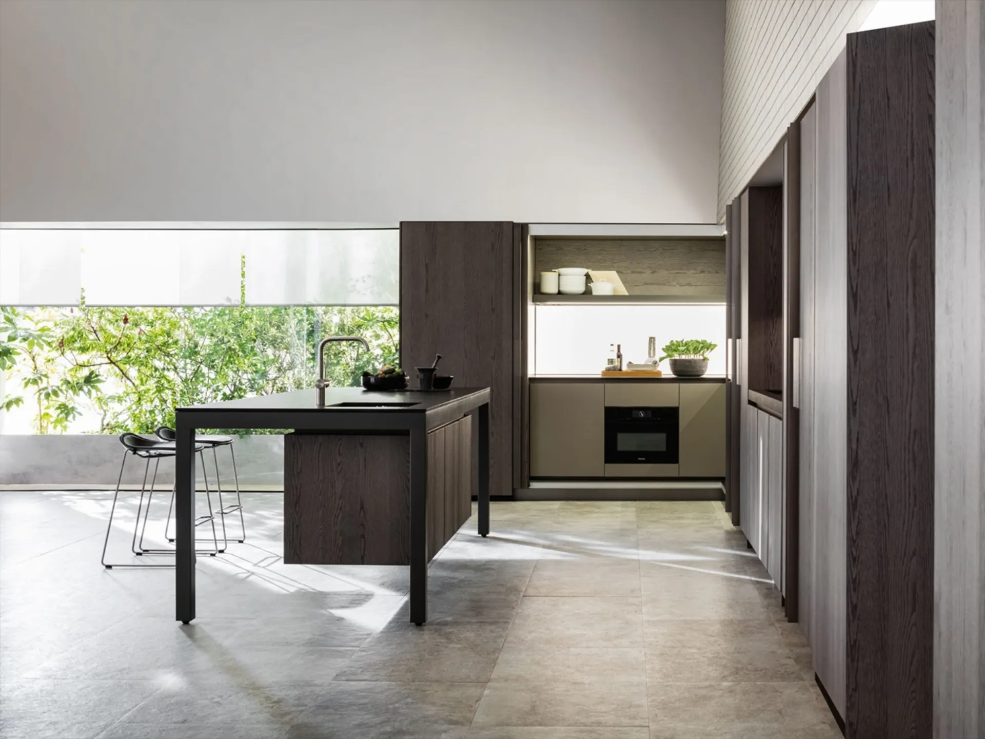 If customizing furniture in a design key is a fundamental element in the furnishing concept of your home, the suggestion is to choose the Kitchens with island from the Molteni & C brand, like the model visible here. This proposal is made of wood, but it is possible to create an inimitable and personalized space thanks to its modularity and customization. By purchasing the Kitchen Design with island Banco from Molteni & C, you will be able to adapt every part of the model to your rooms, creating a unique composition with trendy details. Molteni & C gives us the possibility to recreate solutions with modern shapes that can meet the most personal living and aesthetic needs, where shapes and sizes no longer have boundaries.