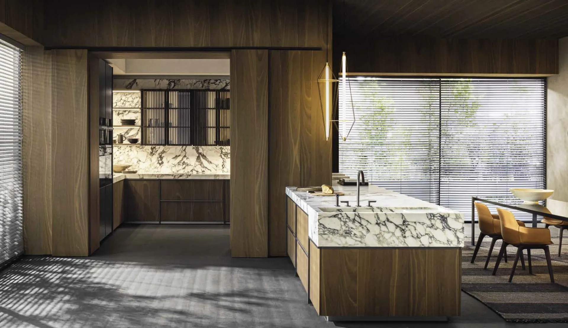 Many people choose to order designer wood design solutions, as they equip spaces by perfectly combining functionality and style. Thanks to the almost infinite choice of colors available for this charming solution signed by Molteni & C, you can create the composition of your dreams. Peninsula design solutions are greatly appreciated for their versatility: here you can see only the best solutions. Kitchens are exposed to steam and heat every day: choosing the right type of material is as essential as proper maintenance.