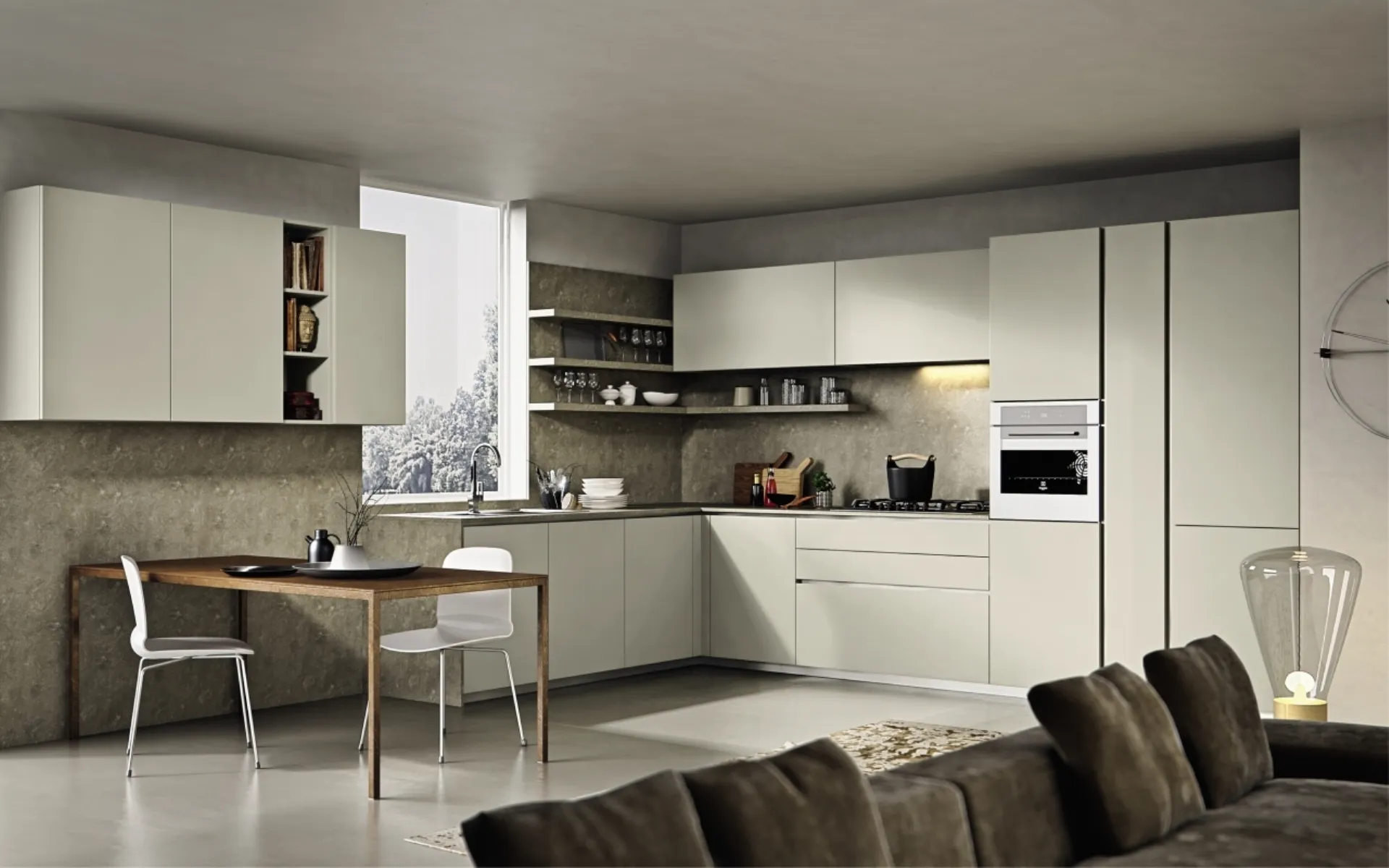 Kitchens are subject to humidity and heat on a daily basis: choosing the right type of material is as essential as proper cleaning and maintenance. Corner design solutions are greatly appreciated for their versatility: in the showroom you can personally see only the best proposals. Many people choose to buy trendy matte lacquer design solutions, as they equip spaces by combining practicality and design excellently. Thanks to the practically infinite choice of shades available for this charming Maistri-signed solution, you can create the composition of your dreams.
