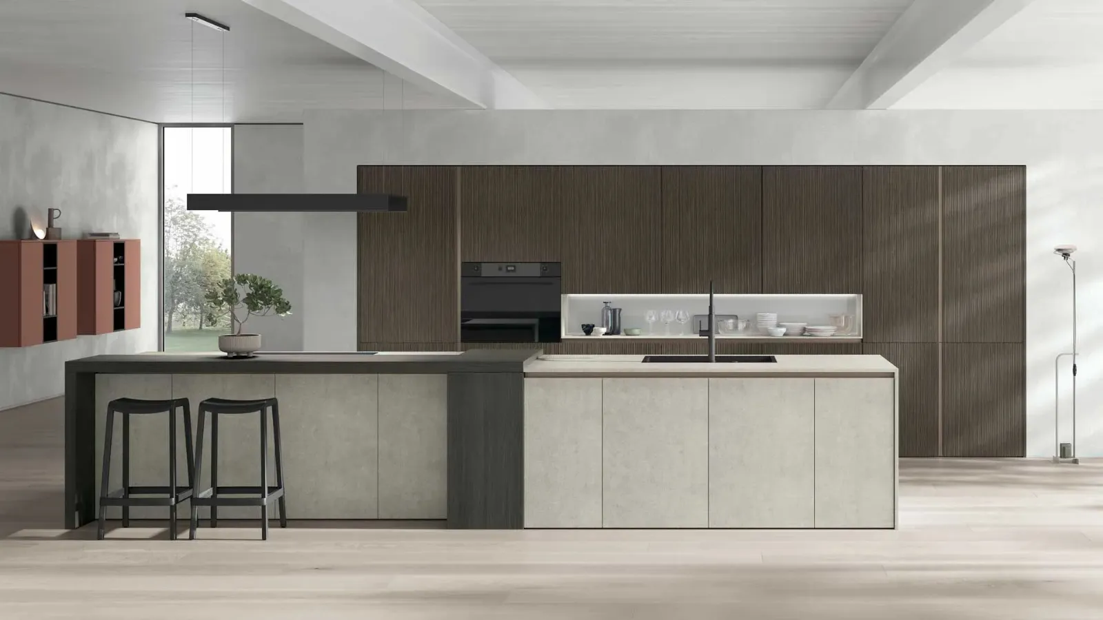 Achieve a tailor-made project with us: to fully enjoy the comfort of your living space, our interior designers are ready to guide you professionally in your purchase. If you want to buy a melamine solution among the various proposals with an island, the high modularity of the Modern Kitchen with island Aliant 15 by Stosa will allow you to express your furnishing needs. The Modern Kitchens by the brand Stosa have a general balance between modern aesthetics, technological research, functionality and creativity.