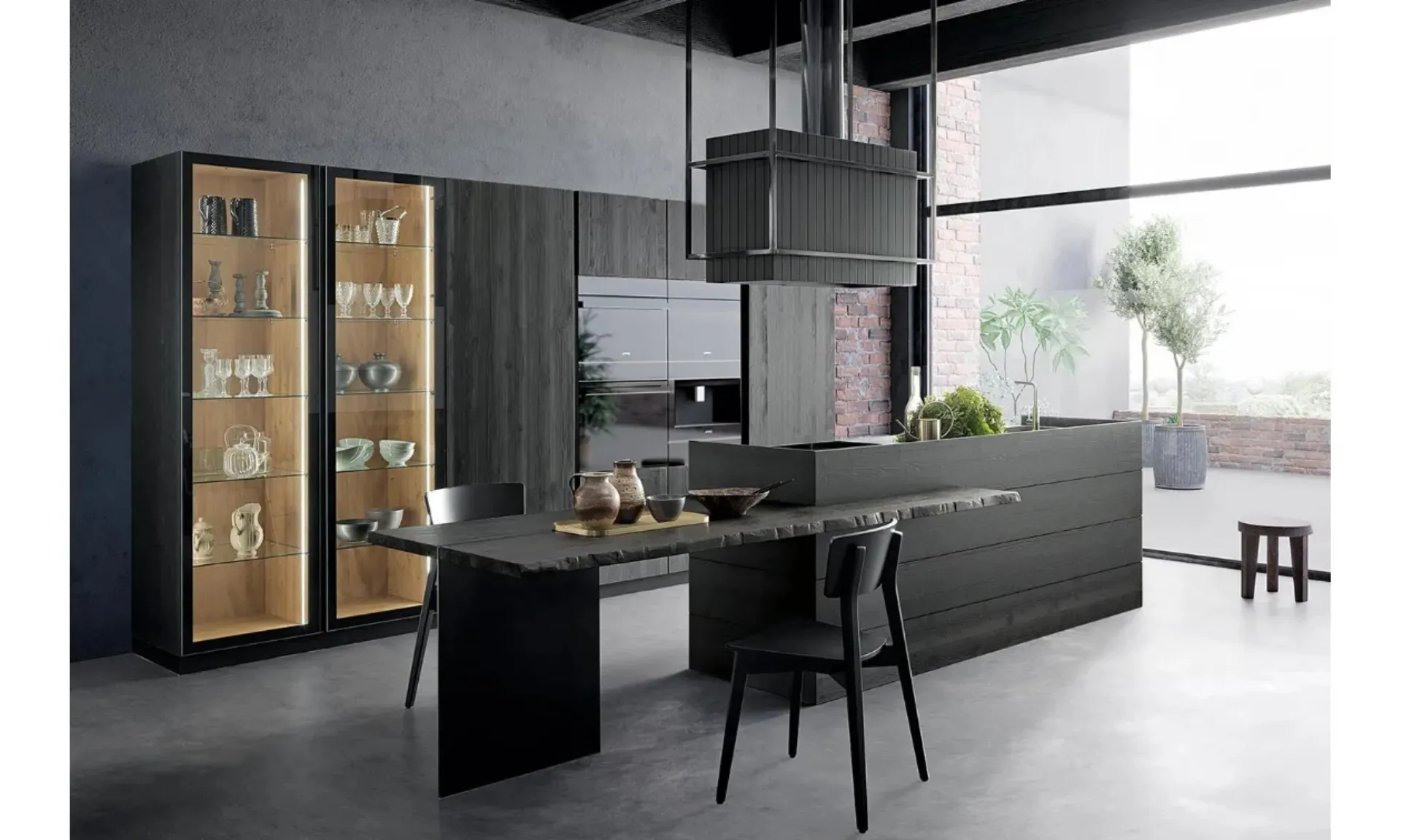 If you want to buy a wooden solution among the different proposals with island, the maximum modularity of the Modern Atelier Urban Kitchen by Callesella will allow you to express your furnishing needs. Create a tailor-made project with us: to live comfortably in your habitat, our designers are ready to guide you professionally in the choice. Among the various models in the Callesella catalogue, the kitchen in the image makes the space easily accessible and allows you to fully enjoy the domestic environments. The Modern Kitchens of the Callesella brand have an overall effect of harmony between contemporary mood, technical innovation, practicality, and creativity.