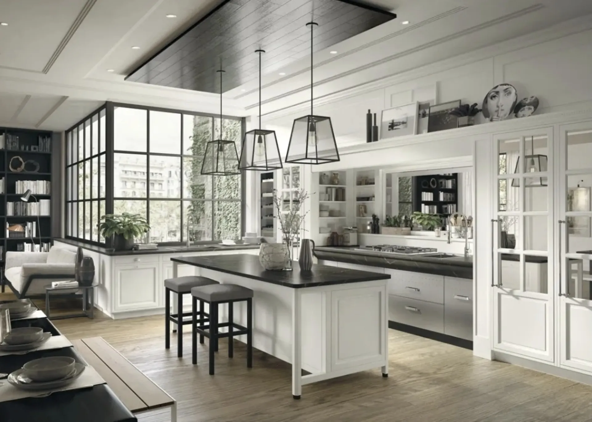 This proposal with a charming island, signed by the renowned brand, is one of the most exclusive models and you can request it in multiple finishes. In our showroom, you will find a rich range of modern kitchens by top brands, available in different colors and trendy finishes, as well as various configurations. Remember that the kitchen area is exposed to moisture and heat: the model in the photo, like all modern kitchens on the market, requires proper maintenance. The purchase of the new kitchen will depend on the shape of the room, its style, and your space, functionality, and storage needs.