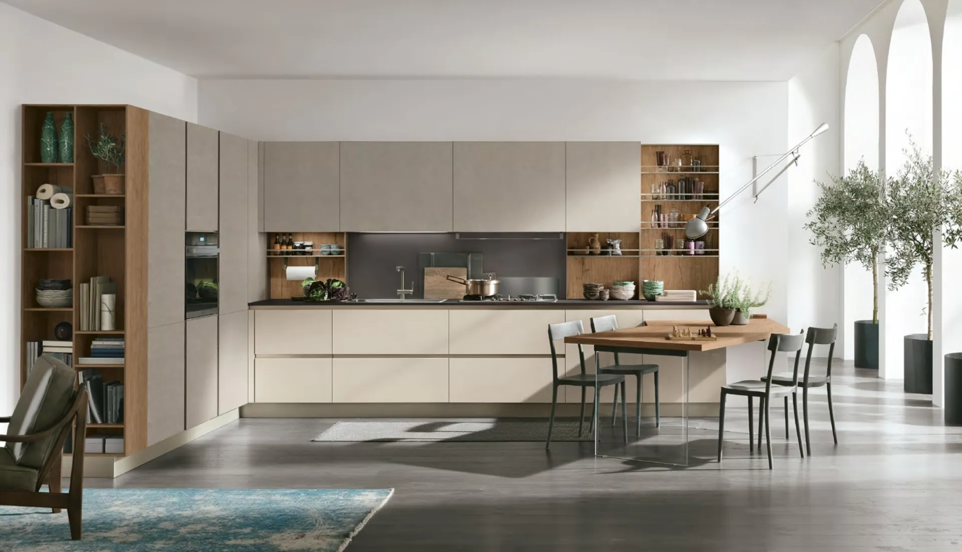 In our showroom you will find a wide range of charming Modern Kitchens by Stosa, available in various colors and modern materials in different shapes. Please note that the kitchen is a space subject to moisture and heat, so the proposal in the photo, like all Modern Kitchens on the market, requires appropriate cleaning and maintenance. The choice of a new kitchen may depend on the shape of the room, its style, and your space, functionality, and storage needs. Choosing this Modern Kitchen Infinity Modern 10 by Stosa in Pet means organizing and enhancing spaces without sacrificing style.