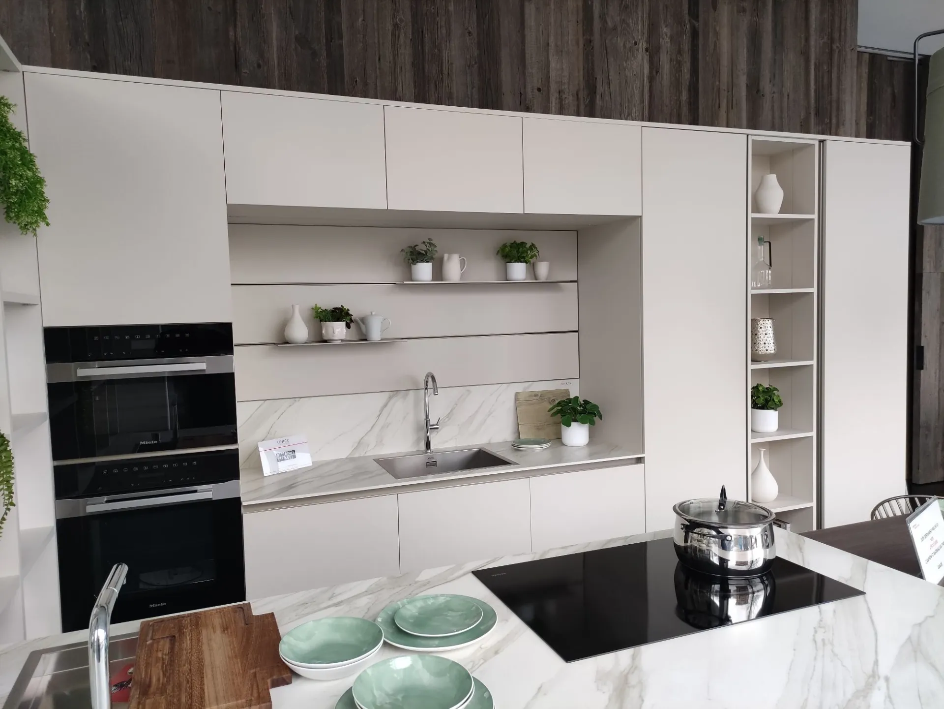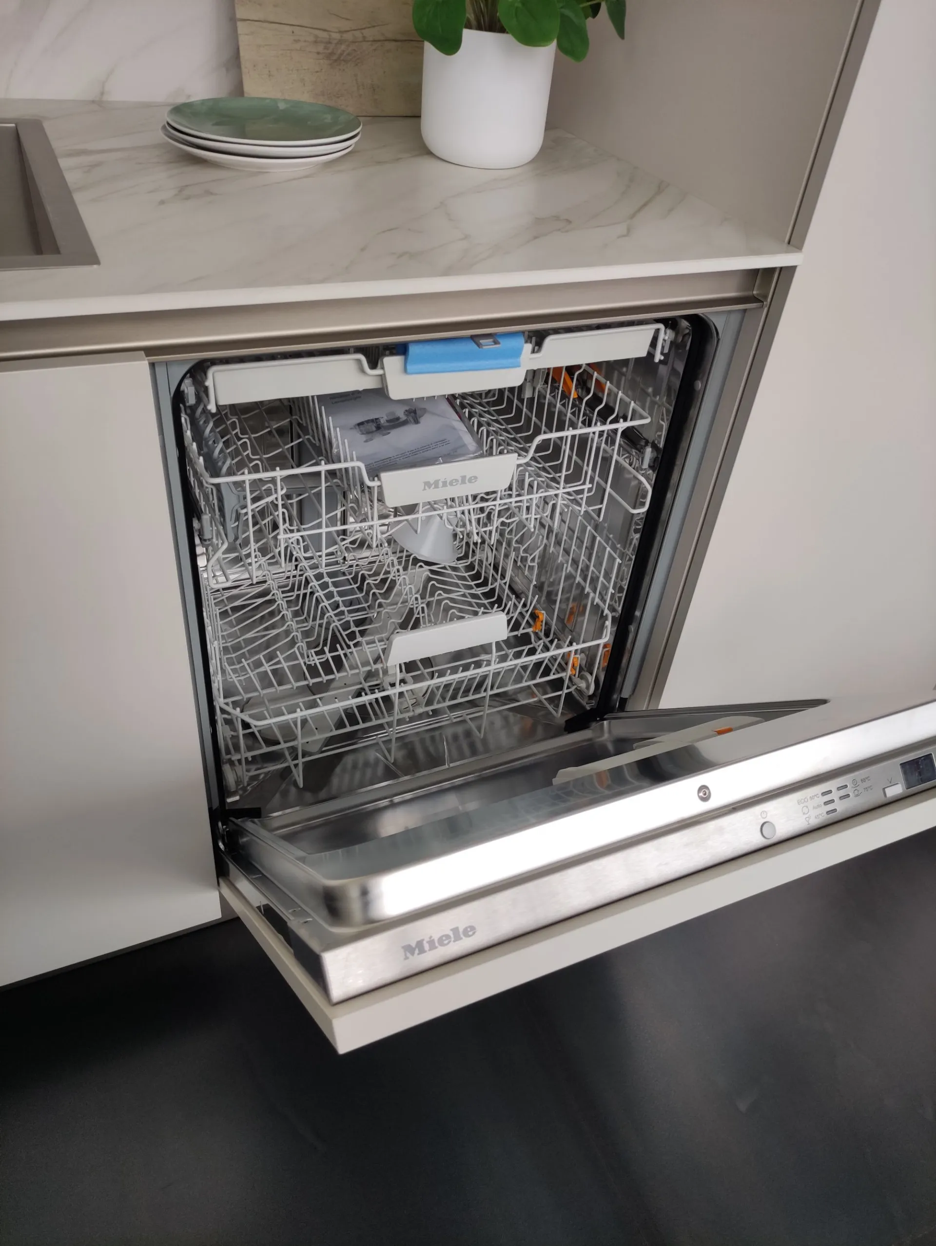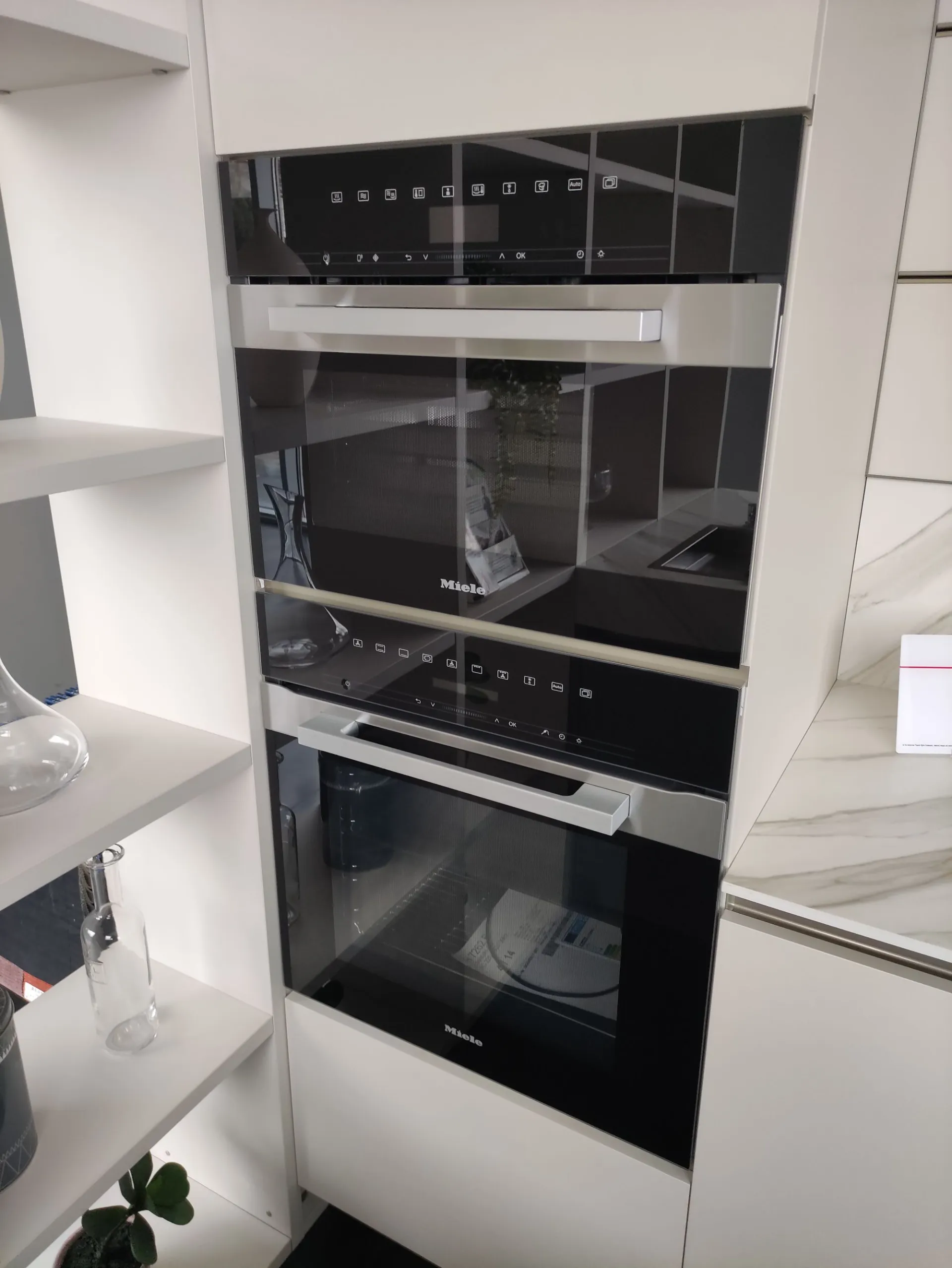 Kitchen, complete with Neolith countertops and Miele appliances. Details: - Induction hob model KM7679FL - Multifunction oven model H 7262 B - Built-in steam microwave model DGM7440 - Built-in refrigerator model Knf37132 id - Dishwasher with hidden controls model G5050 SCVI - Integrated sink model Ariel - Chrome mixer - Calacatta Gold granite kitchen top with Silk finish