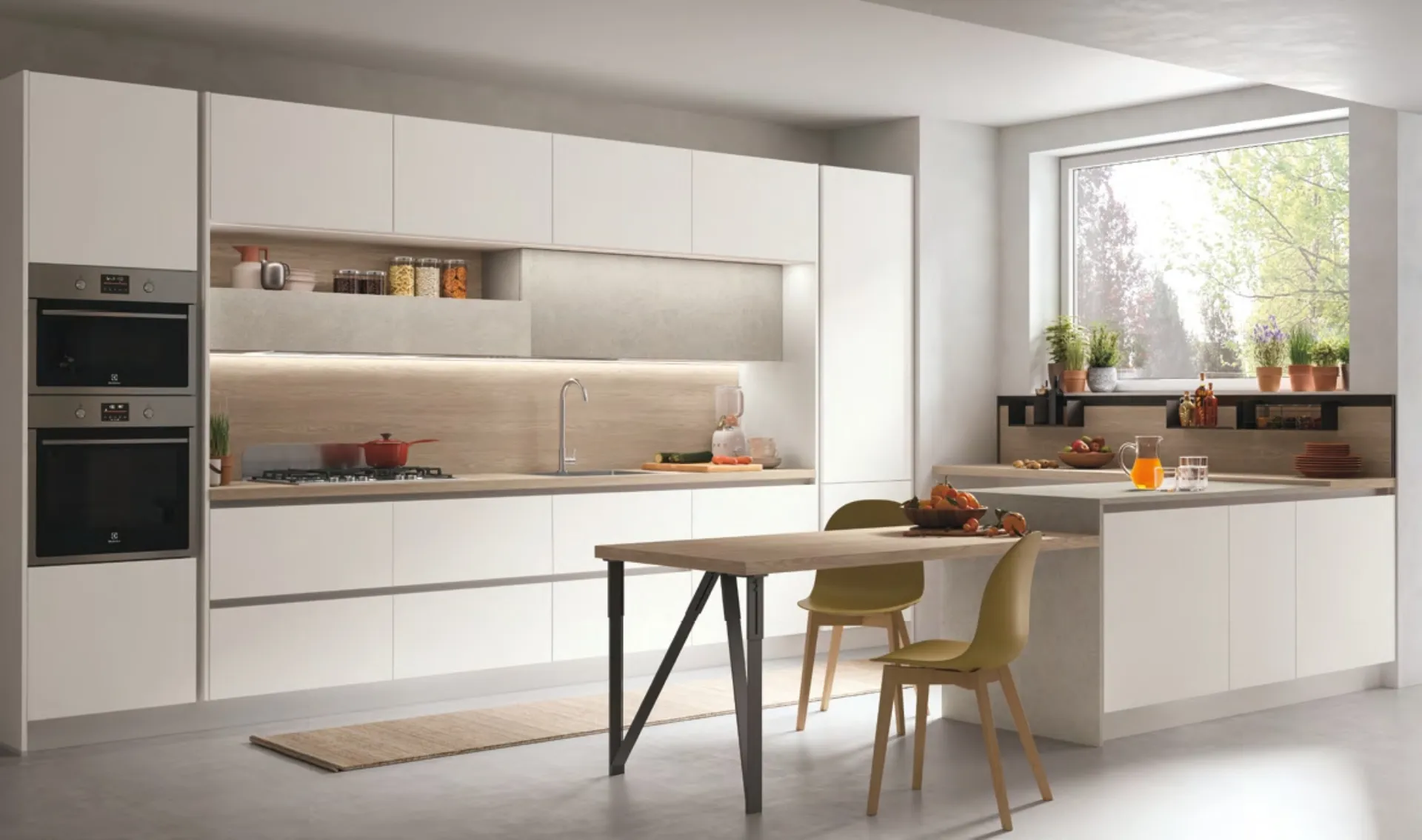 Different modern proposals with a peninsula await you for the kitchen area, ideal for those looking for a familiar, functional, and elegant yet modern space. What makes the Stosa Young Modern 08 Modern Kitchen one of the brand's most exclusive solutions, in addition to its beautiful designs, is the material: it is built with laminate to ensure comfort and durability over the years. When choosing a modern kitchen, you should prioritize how you live in your spaces, to perfectly complete your furniture composition.
