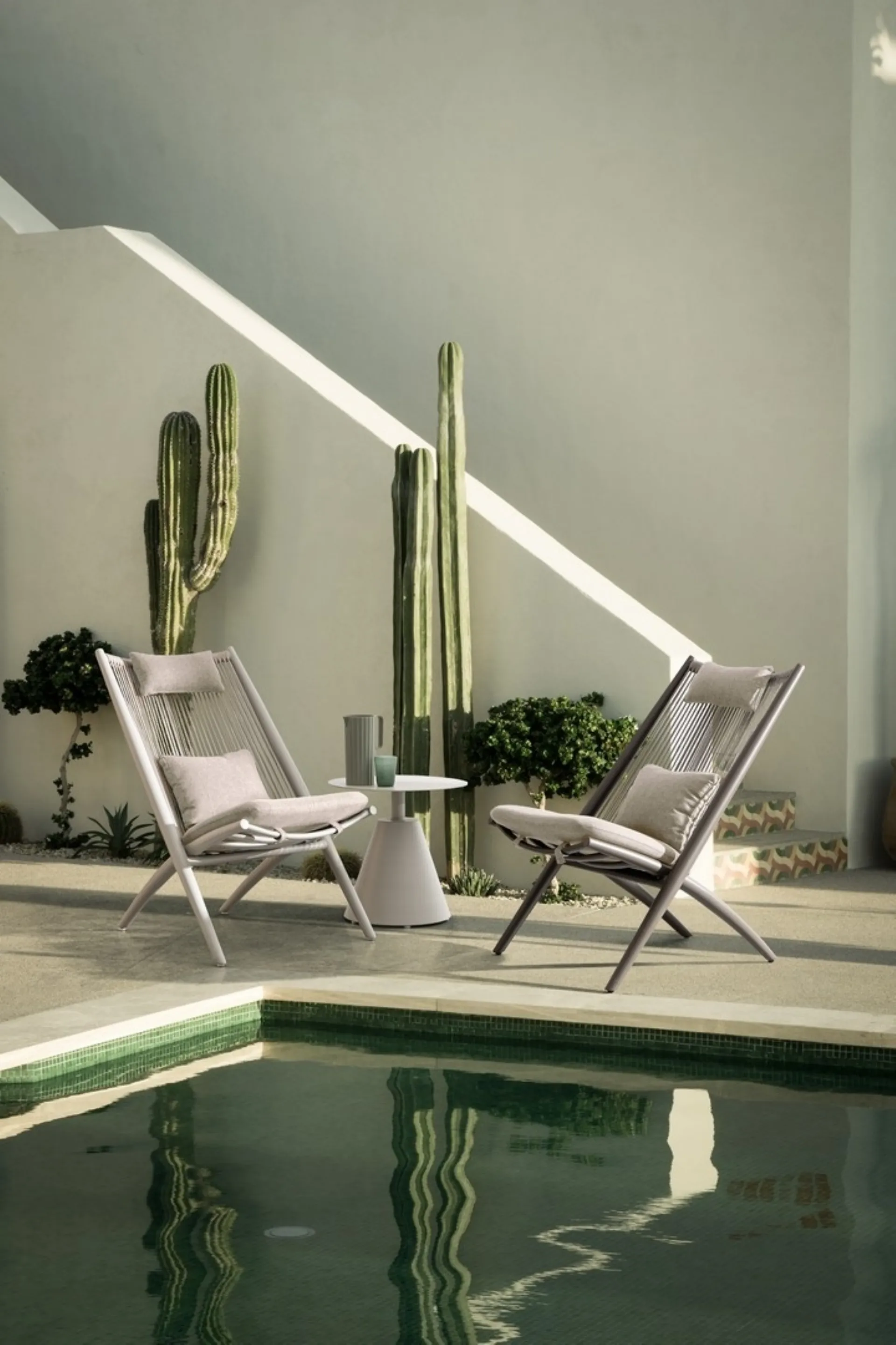 Durable materials and trending lines characterize this model of garden armchairs in Bizzotto fabric, synonymous with quality and excellence in the sector. This proposal of Bizzotto's Aloha Armchair and Table will allow you to create a comfortable living space in the garden, combining great functionality and design. Just like in indoor spaces, you can also express your style in outdoor settings, creating furnishing compositions of high aesthetic value. Have fun organizing your outdoor area as if it were an extra room in your home, discover in store the solutions for the Garden Furniture from the leading brands on the market. Nowadays, even outdoor spaces are recognized as domestic spaces to be carefully furnished so that they appear livable and beautiful to look at.