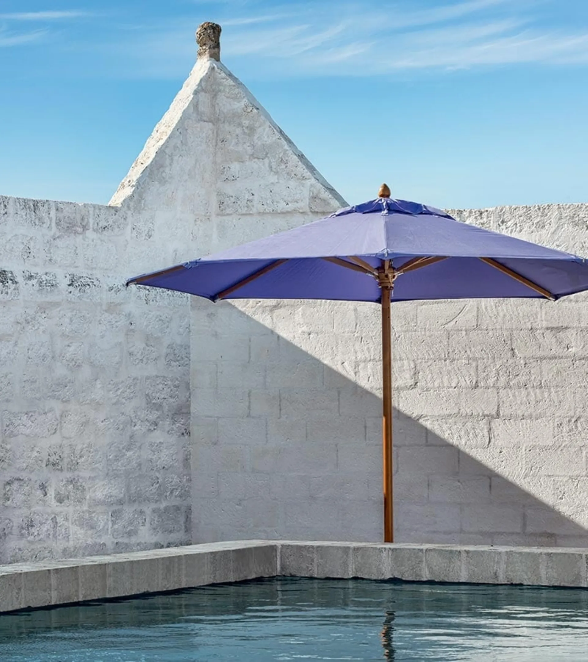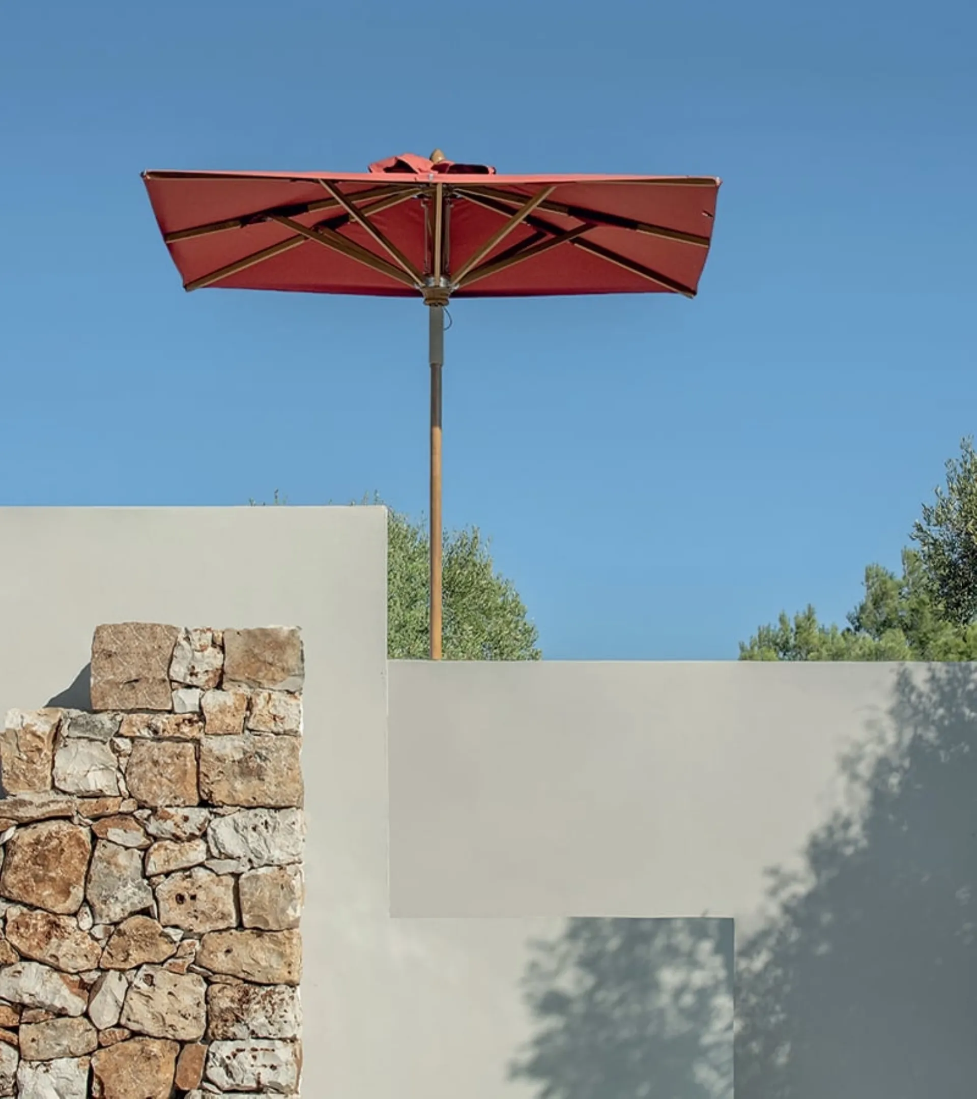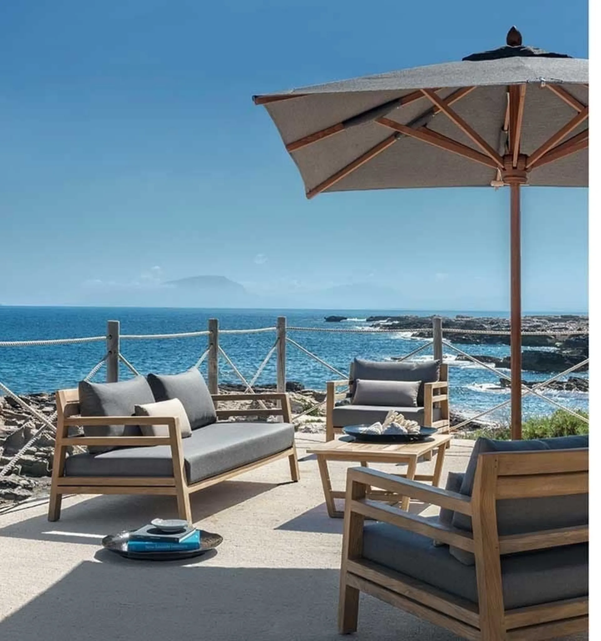 Garden furniture should be designed with the same care and attention as the rooms of our home, so that it creates a pleasant environment. The garden furniture we offer in store combines design and practicality, as demonstrated by this line of wooden umbrellas. In order to enjoy spacious green areas or outdoor terraces, garden furniture should also be carefully chosen in every detail, so that it is always of great aesthetic and functional value. The Ethimo brand boasts years of experience in the industry and is always attentive to evolving tastes in terms of outdoor furniture.