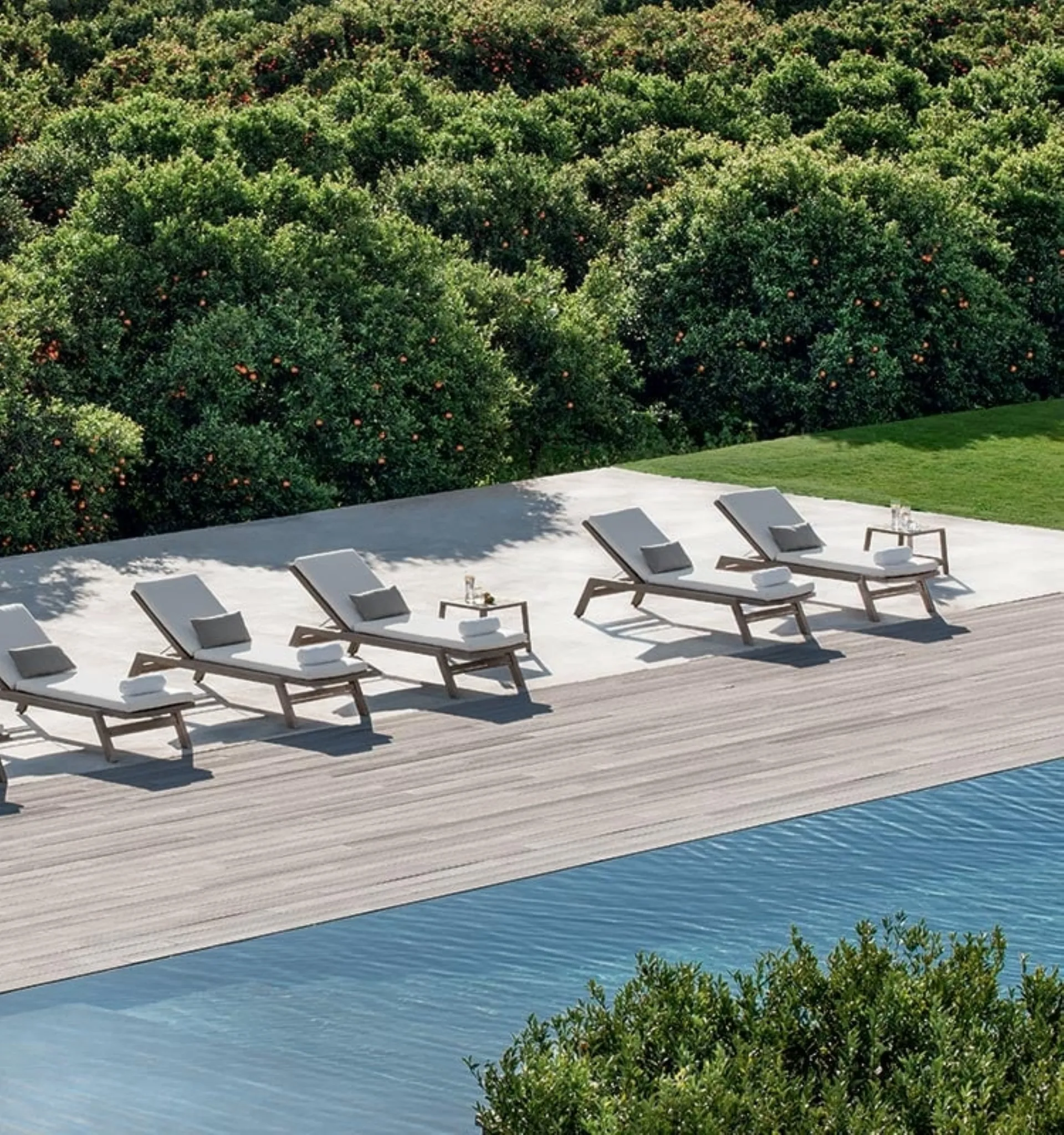 Nowadays, even outdoor spaces are considered domestic spaces to be carefully organized, so that they appear well-organized and beautiful to look at. Have fun furnishing your outdoor space as if it were an additional room in your home, discover in the showroom the outdoor furniture solutions of the best brands on the market. Just like in indoor spaces, in the garden it is possible to communicate your style in terms of furniture, creating compositions of great charm. Durable materials and trendy shapes characterize this model of wooden sun lounger by Ethimo, synonymous with quality and excellence in the field.