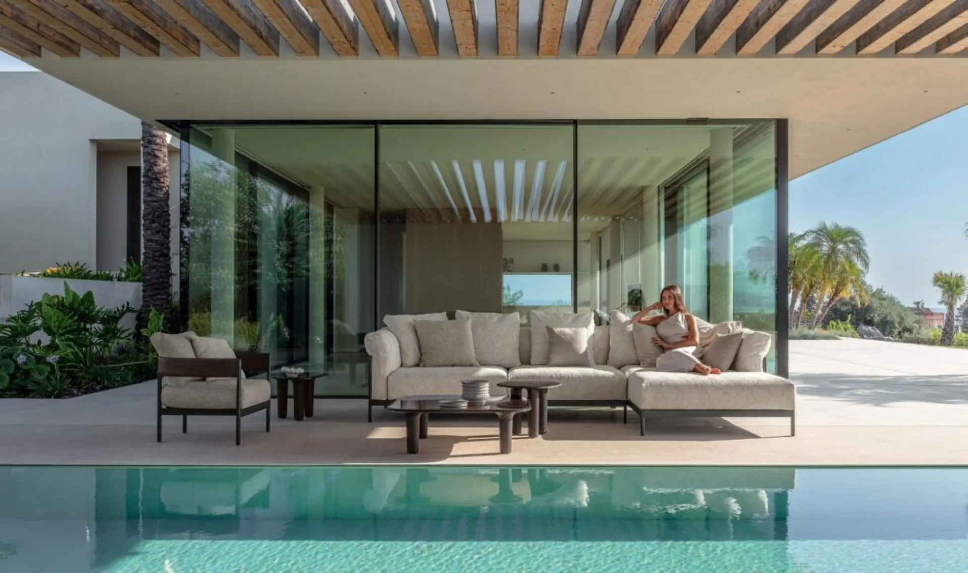 This proposal for the Flow outdoor furniture by Talenti will allow you to create a comfortable open air living room, mixing great functionality and design. Long-lasting materials and trendy lines characterize this model of garden sofas in Talenti fabric, synonymous with quality and excellence in the industry. Have fun furnishing your outdoor space as if it were an extra room in your house, discover in the showroom the outdoor furniture solutions of the main brands on the market. Just like in indoor spaces, it is also possible to formulate your own style in terms of furniture outdoors, creating furnishing compositions of high aesthetic value.