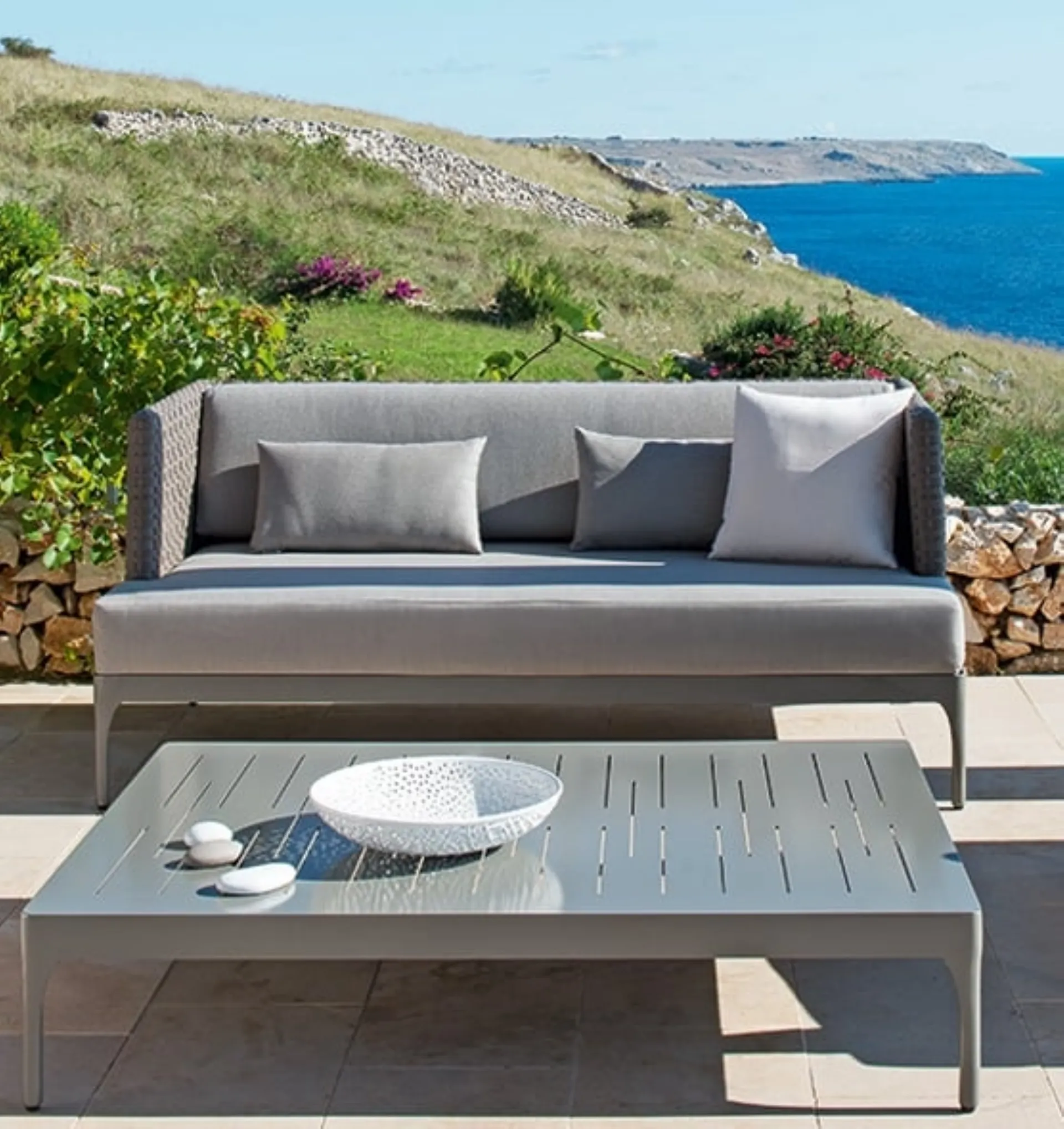 The renowned brand produces garden tables in fabric that can guarantee total customer satisfaction, both in terms of aesthetics and functionality. In the summer, gardens become almost like another room in the house, to be furnished with style: the furnishings must be beautiful and resistant to weather conditions. Those who have an outdoor space know that it is fortunate to be able to enjoy it when the weather is mild, chatting with friends and family or enjoying the surrounding landscape. Ethimo's Infinity Sofa and Table: belongs to the brand's rich range of outdoor furnishings, a guarantee of quality and excellence in the field.