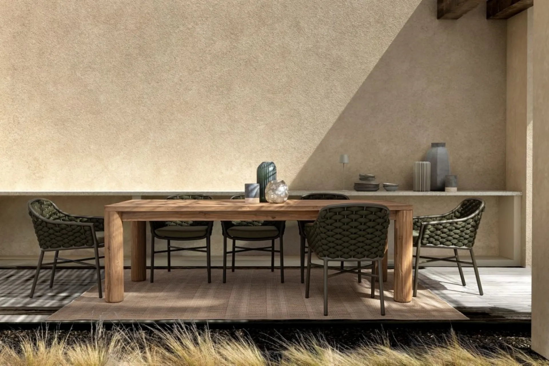 The furnishings offered by the brand combine technical materials and attractive lines, allowing for the perfect completion of outdoor spaces. The Maverick table in recycled teak by Bizzotto belongs to the brand's rich collection of garden furniture, synonymous with excellence in the field of outdoor furnishings. Bizzotto's wooden garden furniture is made of durable materials, ideal for withstanding weather conditions and maintaining aesthetic qualities over time. Outdoor spaces are often seen as idyllic corners in which to relax; furnishings must create a welcoming and refined atmosphere. For consumers looking for outdoor furniture, Bizzotto ensures aesthetic content and quality in its products, including garden tables.
