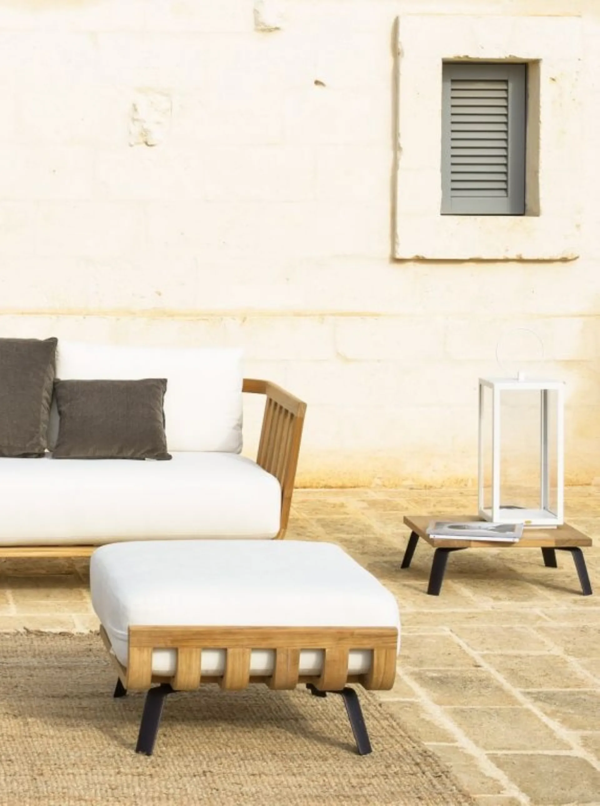 The Unopiu brand boasts years of expertise in the field and is always attentive to the evolution of design in terms of outdoor furniture. In order to enjoy spacious gardens or small outdoor areas, Garden Furniture must also be carefully curated in detail, so that it always looks beautiful and functional. Here you will find this proposal of Pouf Welcome by Unopiu and various other solutions by the well-known brand to furnish the outdoor space with practicality and design. The outdoor furniture we offer in store combines aesthetic value and functionality, as demonstrated by this line of wooden garden poufs. Outdoor furniture should be designed with the same care as indoor furniture, in order to create a pleasant environment.