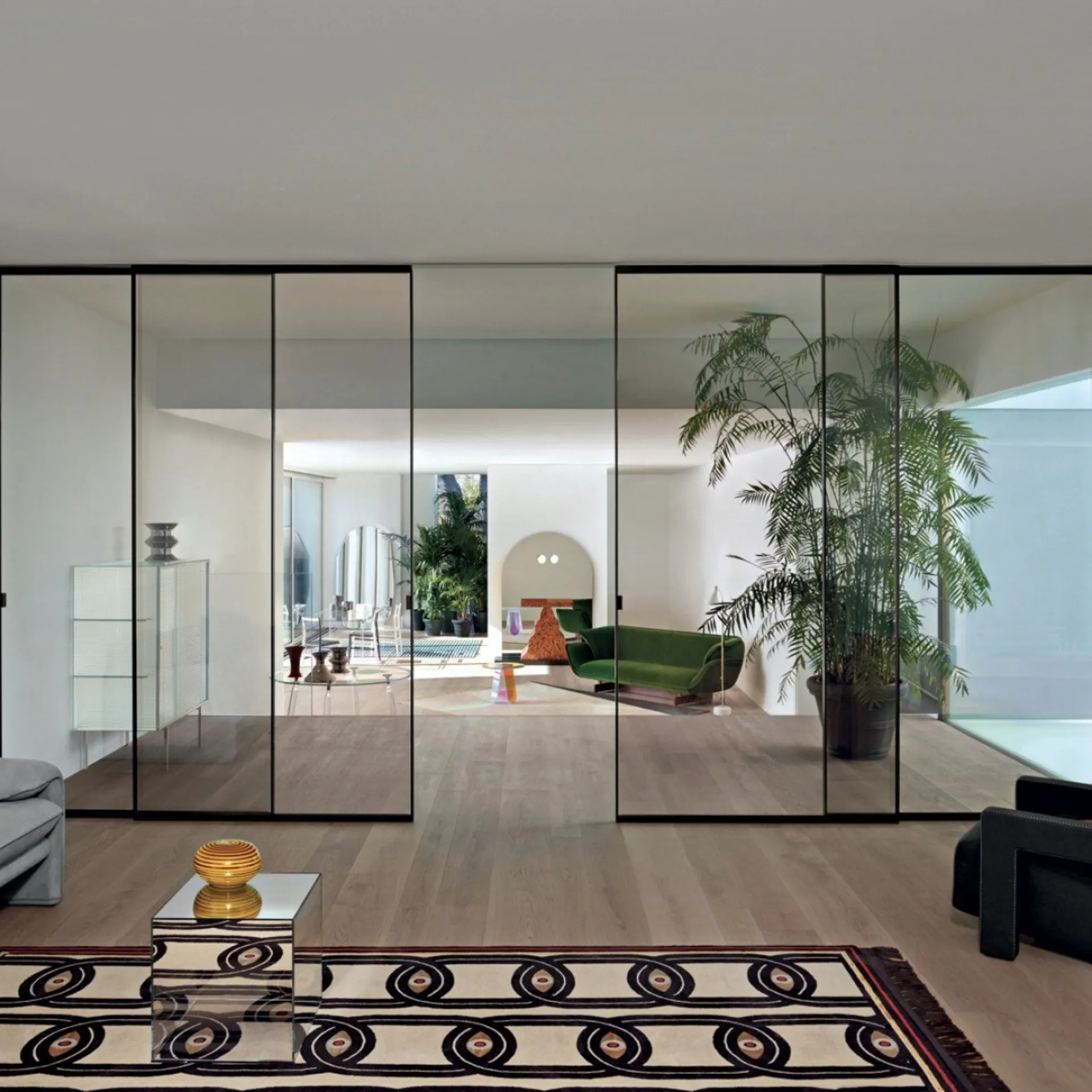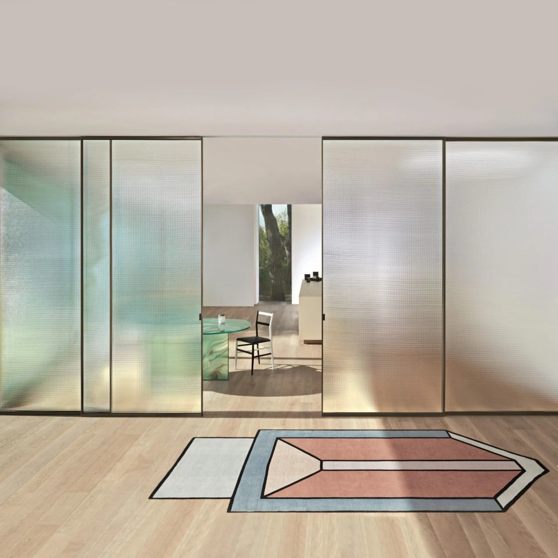 The furniture proposals of the renowned brand are efficient and well-kept, among which you will also find those with aluminum frame design ideal for design rooms. Great craftsmanship and technical innovation distinguish all the design sliding internal doors signed by the brand Glas Italia. The Sherazade Slide internal door by Glas Italia is perfect for you if you want to meet your housing needs and maintain privacy between rooms with a certain style. With a practically infinite range of sliding models, defined by beautiful patterns, design expresses itself with your decorating originality. The most exclusive proposals of the company are tested, as they undergo stress tests and thorough checks: in the showroom you can see the best models up close.